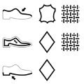 Ādas kurpes, dekorētas ar dažādām detaļām un šņorēm.